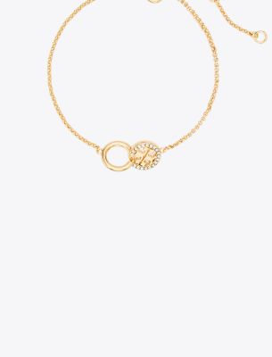アイコニックなダブルTモチーフにインスパイアされたジュエリーコレクション。シンメトリーが描く力強さと美しさ、そしてタイムレスなスタイルの融合。メタルとパヴェクリスタルを組み合わせたリンクが特徴のICON(アイコン)パヴェ インターロッキング チェーン ブレスレット。他のブレスレットやウォッチとの重ね着けでも、単体で着用したクラシックなスタイルでも映えます。