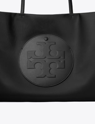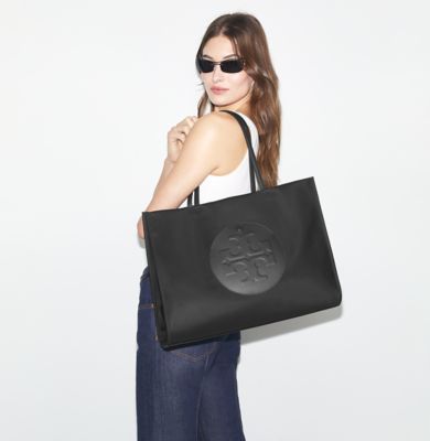 廃棄物削減への取り組みの一環として、革新によって生まれた特別なエラ トートバッグ。特徴であるスマートなルックや機能性、耐久性をさらに高めてアップデートしたトートバッグです。スリムなストラップや滑らかな仕上げといった、洗練されたディテールが映える超軽量シルエット。認証済みリサイクルナイロンを使用し、USDA認証を受けたバイオベースPU素材のトリムとデボス加工のロゴパッチをあしらいました。2008年に登場したエラは、2004年から勤務している、トリーバーチ1号店の店長の娘にちなんで名付けられました。