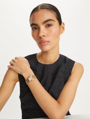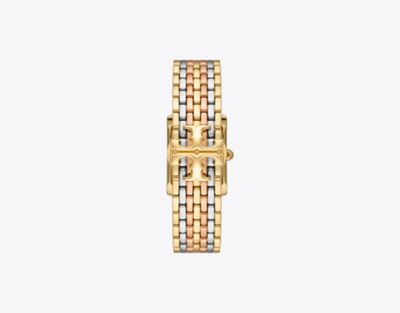 すっきりとしたラインとエレガントなデザイン。アイボリーのダイヤルに3針ムーブメントを搭載した、エレノア ウォッチ。ゴールドトーン、シルバートーン、ローズトーンのステンレススチールを使用し、クラシックなリンクブレスレットを組み合わせました。