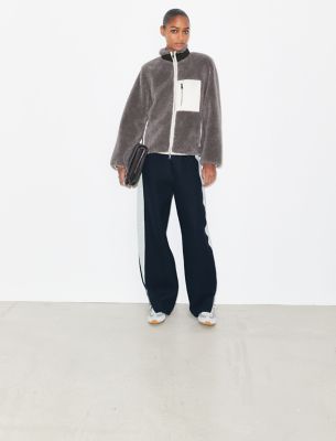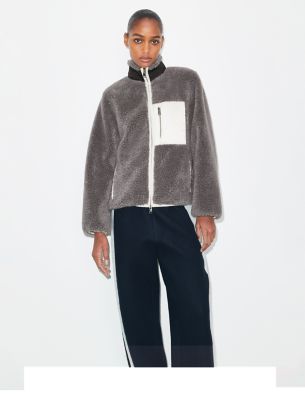 コントラストカラーで仕上げ、実用的なディテールをあしらった、秋の人気重ね着アイテム。柔らかなハイパイル フリースを使用し、リラックス感のあるボクシーフィットに仕立てた、暖かなジャケットです。袖口と裾のリブ素材が暖かさをキープします。胸元のクライミングロープのジッパープルとハンドポケットがスポーティな印象をプラス。