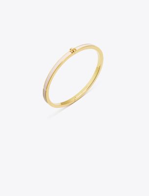なめらかなエナメルと面取りカットのダブルTロゴを組み合わせたキラ ブレスレット。他のブレスレットやウォッチとの重ね着けでも、単体で着用したクラシックなスタイルでも映えます。