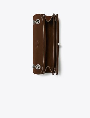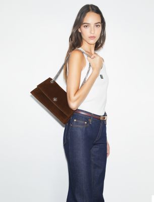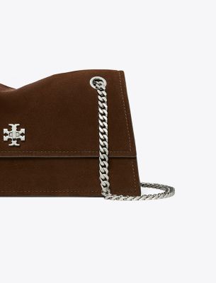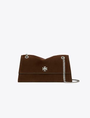 キラ ターンロック ショルダーバッグが登場。角度をつけたシャープなフォルムに、大ぶりのカーブチェーンストラップとターンロックなどの印象的な金具をあしらいました。柔らかいスエードを使用したクラシックなフラップシルエット。内側の3つのコンパートメントは拡張可能で、整頓に便利なデザイン。