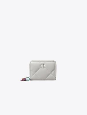 やみつきになる、ふんわりやさしいダイヤモンドステッチのイタリアンソフトレザー。ピローを思わせるフォルムに、面取りカットのダブルT金具をあしらいました。キラ ダイヤモンドキルト ジップアラウンド スモール ウォレットは、コインポケットなどのコンパートメントが多彩で、ミニバッグの中にも入れられる小さめのサイズが魅力です。チャームがアクセントのジッププル付き。レザー製造と化学物質管理において高い水準を保つためのサポート活動を行う団体、レザーワーキンググループ(LWG)の認定を受けたなめし工場とのパートナーシップにより作られています。