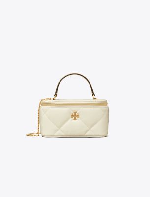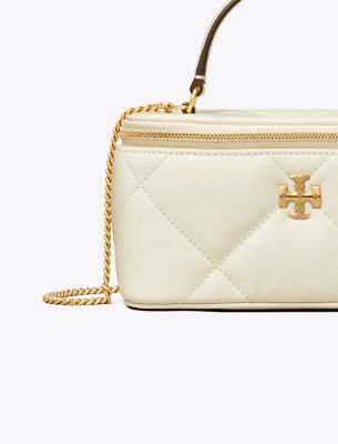 バケーションの季節に。オールドスクールスタイルをミニサイズにアレンジした、トレンド感あふれるデザインです。驚くほどソフトな、ふっくらとしたダイヤモンドステッチを施したキラ ダイヤモンドキルト ヴァニティケース。ピローを思わせるクラシックなフォルムに、面取りカットのダブルT金具をあしらいました。