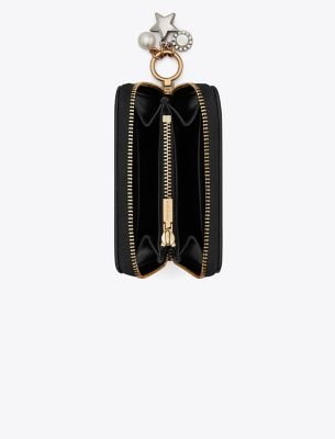 ジッププルに3つのチャームをあしらった、キラ ダイヤモンドキルト ジップアラウンド スモールウォレット。ふっくらとしたダイヤモンドステッチを施した、驚くほどソフトなレザーを、面取りカットのダブルT金具で引き立てました。ミニバッグにもぴったりのサイズで、コインポケットを含む複数のコンパートメントを備えています。