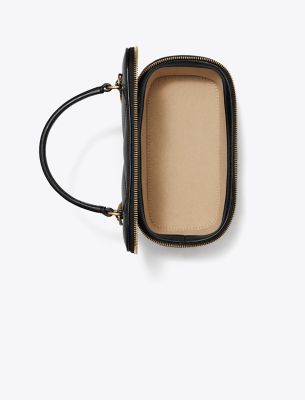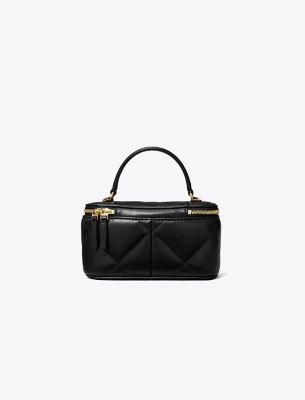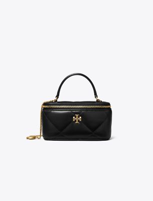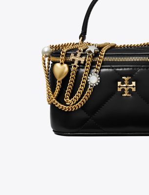 バケーションの季節に。オールドスクールスタイルをミニサイズにアレンジした、トレンド感あふれるデザインです。驚くほどソフトな、ふっくらとしたダイヤモンドステッチを施したキラ ダイヤモンドキルト ミニヴァニティケース。ピローを思わせるクラシックなフォルムに、面取りカットのダブルT金具をあしらいました。トップハンドルとクロスボディストラップの2通りの持ち方が楽しめます。