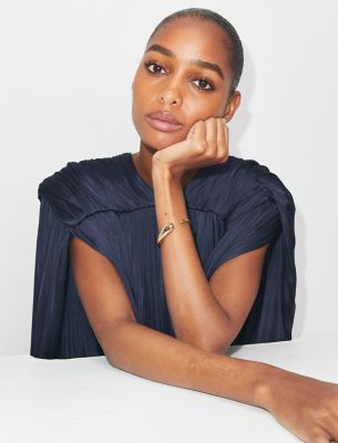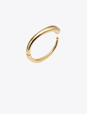 ブランドを象徴するシュールなデザインをジュエリーとして再解釈した、スマートな細身のカフ。ベストセラーのピアス シューズコレクションのメタルパーツをイメージし、パヴェクリスタルのリングをあしらいました。