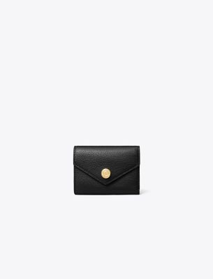 クリーンなラインと柔らかなシュリンクレザーでデザインされたスモール エンベロープ ウォレット。複数のポケットを備えています。