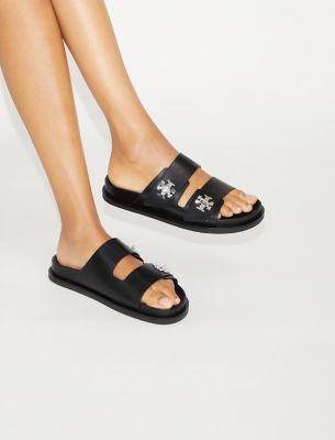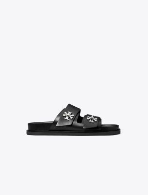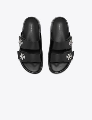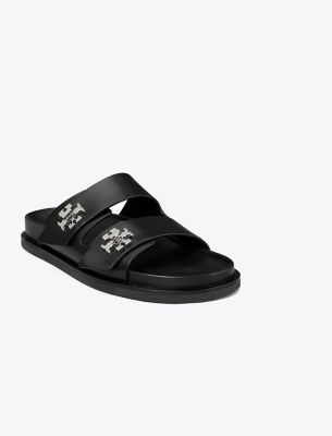 メタルのダブルTディテールにちなんで名付けられたターンロック スポーツスライドは、快適な履き心地で歩きやすいデザインです。ストラップ2本、成型インソール、ラバーアウトソールが特徴のレザースリッポンサンダル。