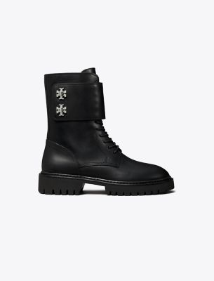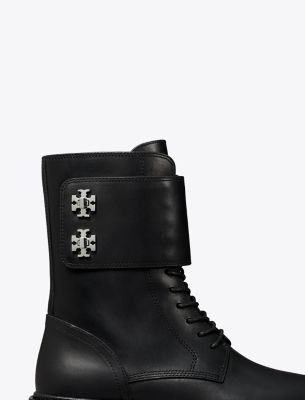 レザーを使用したコンバットスタイルのブーツ。レースアップのフロントとメタルのターンロックで固定した幅広のトップストラップが特徴です。簡単に着脱できるようサイドジッパーを施し、ラバーソールでグリップ力と耐久性を実現しました。