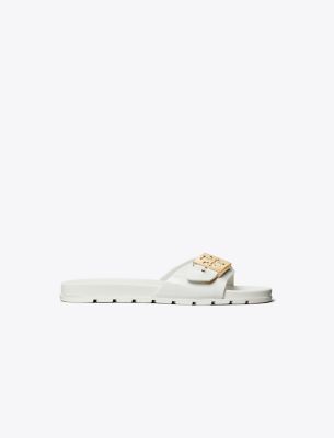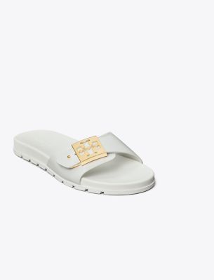 メロー コレクションより - 超軽量で柔軟性のあるスライドサンダル。スポーツスライドの快適さと履きやすさを追求したシンプルなシルエットに、装飾バックルをあしらいました。
