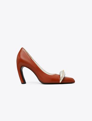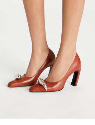 2024年秋のランウェイで注目を集めたピアス コレクションより、構築的なデザインのパンプスが再び登場。シームレスなシルエットを大胆なメタルパーツで引き立てた、フェミニンなムード漂うシューズです。カーブヒールに、柔らかなポインテッドトゥ。トゥリングを思わせるツートーンのメタルリングが、美しい流線形を描きます。レザーを使用し、クッション性のあるフットベッドを合わせました。