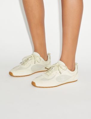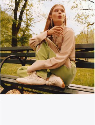 ごく薄底のラバーソールを備えた、ローカットシルエットの新作スニーカー。フィールドでの探検や発見にちなんで名付けられました。軽量で、毎日活躍するシックなアイテム。レザーとメッシュ、スエードをミックスしたデザインに、同系色のエナメルでさりげないダブルTロゴをあしらっています。スペアのシューレース付き。
