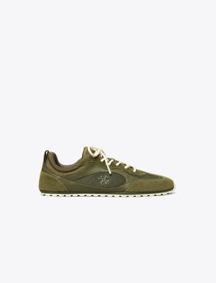 ごく薄底のラバーソールを備えた、ローカットシルエットの新作スニーカー。フィールドでの探検や発見にちなんで名付けられました。軽量で、毎日活躍するシックなアイテム。レザーとメッシュ、スエードをミックスしたデザインに、同系色のエナメルでさりげないダブルTロゴをあしらっています。スペアのシューレース付き。