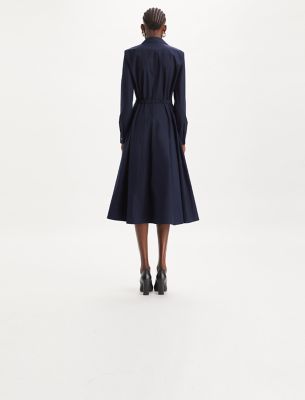 ストレッチベルトでウエストを強調した、プリーツ入りコットンのシャツドレス。前立てに比翼のボタン留めを施し、すっきりとしたシルエットに仕上げています。フェミニン、エフォートレス。重ね着も簡単です。