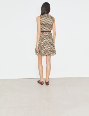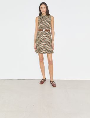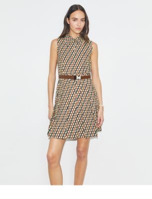 フィット感のあるトップとフレアのプリーツスカートを組み合わせた、フェミニンなシルエットが引き立つデザイン。グリーンで動きやすいように、優れた伸縮性を備えた洗練されたドレス。マザーオブパールボタンが洗練された印象をプラスし、スピードクリップバックルが付いた取り外し可能なベルトがスポーティな印象を引き立てます。