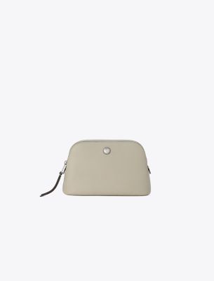 ソフトなペブルドレザーを使用した、普段使いや旅行に最適なドーム スモール コスメティックケース。コットンの裏地と内ポケットが付いたメイクポーチです。