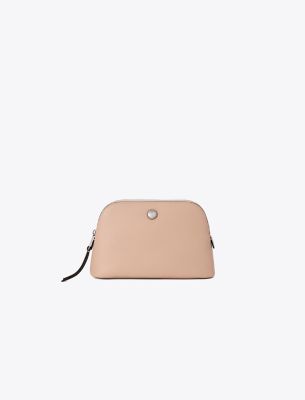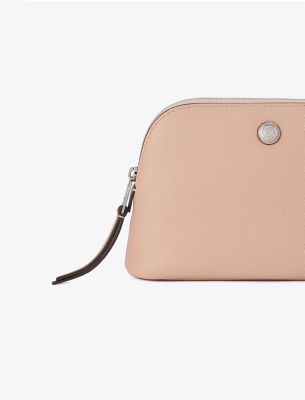 ソフトなペブルドレザーを使用した、普段使いや旅行に最適なドーム スモール コスメティックケース。コットンの裏地と内ポケットが付いたメイクポーチです。