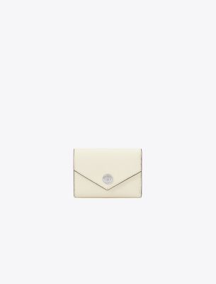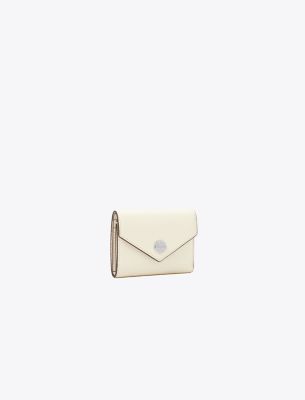 柔らかなペブルドレザーを使用した、すっきりとしたラインのスモール エンベロープウォレット。内側に複数のポケットを備えています。