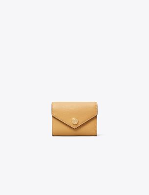 柔らかなペブルドレザーを使用した、すっきりとしたラインのスモール エンベロープウォレット。内側に複数のポケットを備えています。