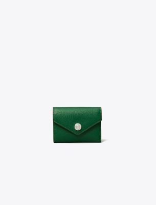 柔らかなペブルドレザーを使用した、すっきりとしたラインのスモール エンベロープウォレット。内側に複数のポケットを備えています。