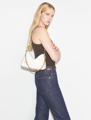 美しいペブルドレザーを使用したペリー スモール ショルダーバッグ。ゴールドチェーンを合わせるとミニマルなスタイルからグラマラスなスタイルへと印象を変えます。調節可能なレザーストラップが付いているので、ショルダーバッグとしてもクロスボディとしても活躍します。