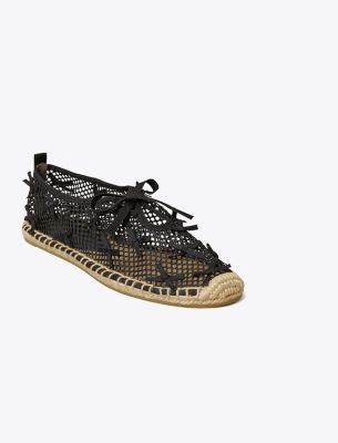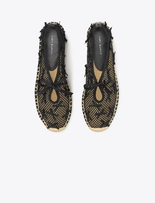 フェミニンなディテールとコントラストの効いた質感で、暖かい季節に最適なエスパドリーユをアップデート。ウーブンメッシュのアッパーに、手作業で結んだミニボウとキーホールの装飾をあしらいました。伸縮性のあるトップラインが足をソフトに包み込みます。ジュートのローインソールを合わせた軽量スリッポンが、春夏の定番シューズを格上げします。