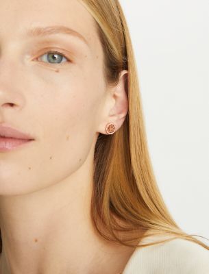 アイコニックなコレクションが、新しいスタイルのジュエリーに。オープンワークのダブルTロゴに小さなストーンを散りばめた、ミラーパヴェ スタッズピアス。ピアススタイル。