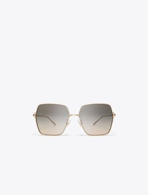 グラディエントレンズを採用したオーバーサイズのスクエアメタルフレームは、ローノーズブリッジ専用のデザイン。軽量のミラー サングラスは、ダブルTロゴをあしらった細身のテンプルが特徴です。