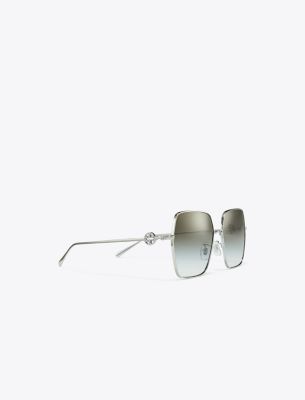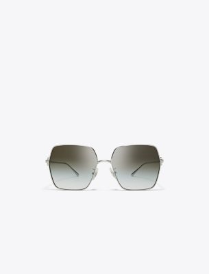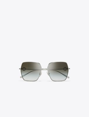 グラディエントレンズを採用したオーバーサイズのスクエアメタルフレームは、ローノーズブリッジ専用のデザイン。軽量のミラー サングラスは、ダブルTロゴをあしらった細身のテンプルが特徴です。