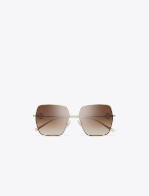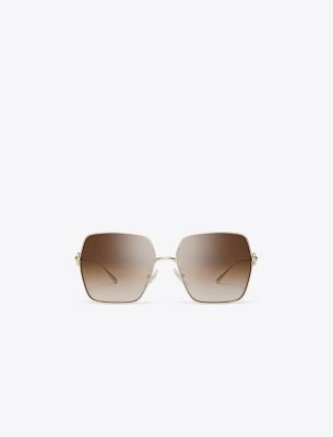 グラディエントレンズを採用したオーバーサイズのスクエアメタルフレームは、ローノーズブリッジ専用のデザイン。軽量のミラー サングラスは、ダブルTロゴをあしらった細身のテンプルが特徴です。