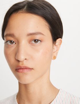 アイコニックなコレクションが、新しいスタイルのジュエリーに。オープンワークのプレーテッドブラス製ダブルTロゴを配し、普段使いにぴったりのミラー スタッズ ピアス。ピアススタイル。
