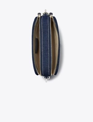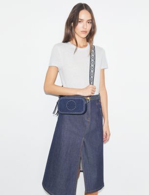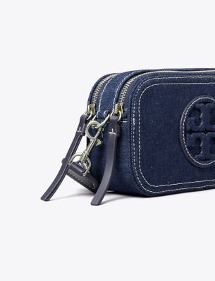 シグネチャーコレクションより登場した、ミラー ミニクロスボディバッグ。ダークウォッシュドデニムを使用し、レーザーカットのダブルTロゴをあしらいました。2つのファスナー付きのコンパートメントを備えています。 お好みに合わせてアレンジできる、取り外し可能なTモノグラムジャガードのストラップ付き。