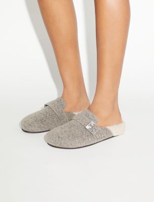 リラックス感とラグジュアリーな表情を持つメロー ミュールを、暖かなウールと肌触りの良いフェイクファーで冬に向けてアップデート。足の形に合わせたとびきり快適なインソール、柔軟性のあるラバーソール、メタルロゴをあしらった、エフォートレスなスリッポンです。