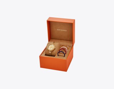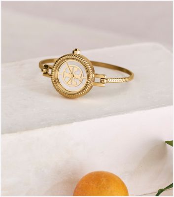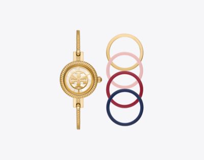 フェイスの中央に配した大きめのダブルTロゴ、凝ったデザインのベゼルやストラップが目を惹くジュエリーウォッチ。4色の付け替え可能なベゼルもセットにしました。お気に入りのスタイリングに合わせて手元をエレガントに彩り、洗練された大人の女性らしさを演出します。