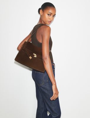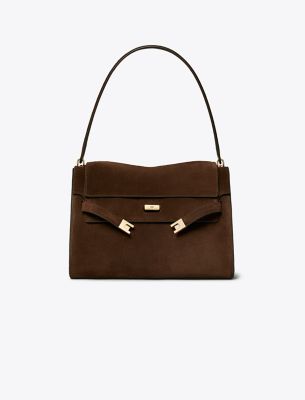 柔らかなスエードで美しく仕立てられた、リー ラジウィル ラージショルダーバッグ。かっちりとしたフォルムに、シグネチャーのベルト付きTロック金具をあしらいました。Jackie Kennedy Onassis(ジャッキー・ケネディ・オナシス)のとびきり個性的な妹Lee Radziwill(リー・ラジウィル)にちなんで名付けられたコレクションです。
