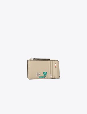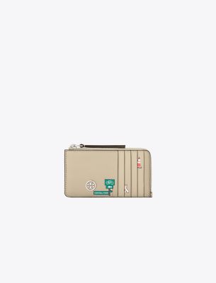 Toryの両親、BuddyとReva Robinsonにちなんで名付けられたコレクション。二人の旅への愛情にインスパイアされた、使い勝手の良いタイムレスなシルエットは、日常のさまざまなシーンで活躍します。ニューヨークの街頭で見かける犬たちを内部にプリントした、ロビンソン ジップ カードケース。ソフトなペブルドレザーを使用し、ファスナー付きコインポーチと充実したポケットを備えています。
