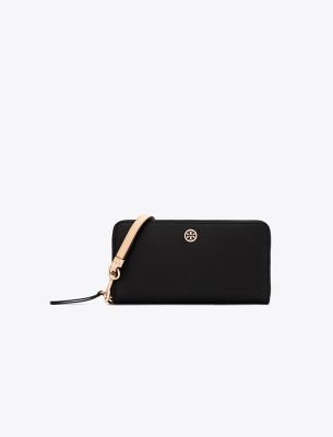 Toryの両親、BuddyとReva Robinsonにちなんで名付けられたコレクション。二人の旅への愛情にインスパイアされた、使い勝手の良いタイムレスなシルエットは、日常のさまざまなシーンで活躍します。ソフトなペブルドレザーを使用したロビンソン ファスナー付きコンチネンタルウォレットは、紙幣を折りたたむことなく収納できる長財布です。