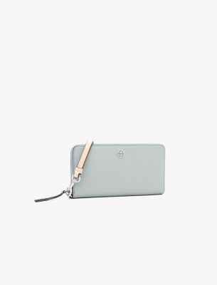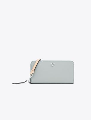 Toryの両親、BuddyとReva Robinsonにちなんで名付けられたコレクション。二人の旅への愛情にインスパイアされた、使い勝手の良いタイムレスなシルエットは、日常のさまざまなシーンで活躍します。ソフトなペブルドレザーを使用したロビンソン ファスナー付きコンチネンタルウォレットは、紙幣を折りたたむことなく収納できる長財布です。