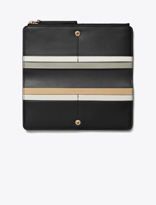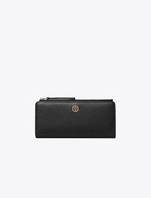 Toryの両親、BuddyとReva Robinsonにちなんで名付けられたコレクション。二人の旅への愛情にインスパイアされた、使い勝手の良いタイムレスなシルエットは、日常のさまざまなシーンで活躍します。内部のポケットが充実した、ロビンソン ジップ スリム ウォレット。ソフトなペブルドレザーを使用した長財布には、紙幣を折りたたむことなく収納できます。