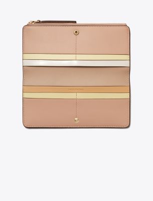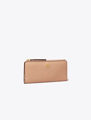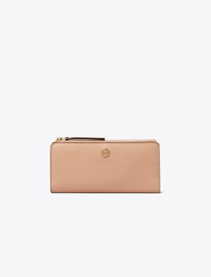 Toryの両親、BuddyとReva Robinsonにちなんで名付けられたコレクション。二人の旅への愛情にインスパイアされた、使い勝手の良いタイムレスなシルエットは、日常のさまざまなシーンで活躍します。内部のポケットが充実した、ロビンソン ジップ スリム ウォレット。ソフトなペブルドレザーを使用した長財布には、紙幣を折りたたむことなく収納できます。