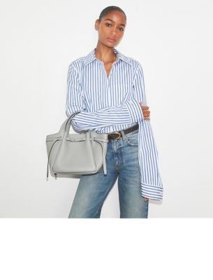 ソフトなペブルドレザーを使用し、ゆるやかなギャザーを寄せたロミー スモールトートバッグ。ゆとりのあるコンパートメントと、小物を整理できる大きなポケットを備えた、毎日活躍する軽量バッグです。スリムなベルトと、新デザインのボタンロゴをあしらいました。トップハンドルとクロスボディストラップの2通りの持ち方が楽しめます。
