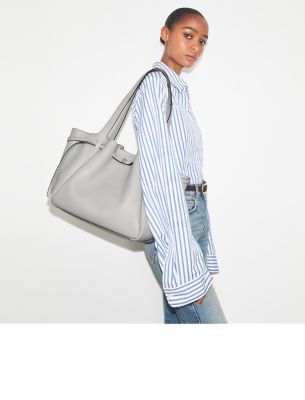 ソフトなペブルドレザーを使用し、ゆるやかなギャザーを寄せたロミー トートバッグ。ゆとりのあるコンパートメントと、小物を整理できる大きなファスナー付きポケットを備えた、毎日活躍する軽量バッグです。スリムなベルトと、新デザインのボタンロゴをあしらいました。快適にお持ちいただける、幅広のショルダーストラップが付属。旅行にも理想的なトートバッグです。