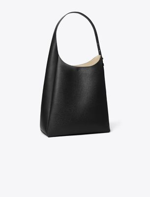 ソフトなペブルドレザーを使用したロミー ホーボーバッグ。ゆとりのあるコンパートメントと、小物を整理できる大きなファスナー付きポケットを備えた、毎日活躍する軽量バッグです。スリムなショルダーストラップと、新しいロゴボタンをあしらっています。