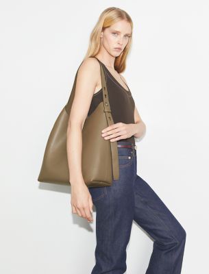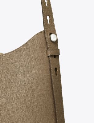 ソフトなペブルドレザーを使用したロミー ホーボーバッグ。ゆとりのあるコンパートメントと、小物を整理できる大きなファスナー付きポケットを備えた、毎日活躍する軽量バッグです。スリムなショルダーストラップと、新しいロゴボタンをあしらっています。
