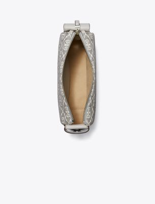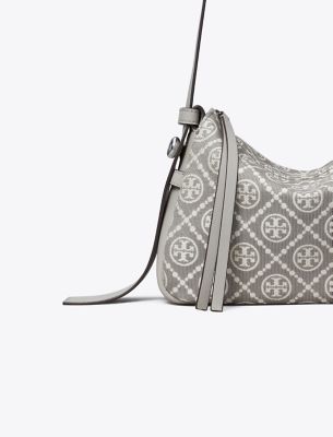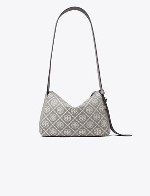 普段使いに最適な究極のバッグ。彫刻的でありながらも柔らかな、お出かけにぴったりのロミー スモール ショルダーバッグ。シグネチャーのTモノグラムジャガードで仕立てました。この軽量バッグは、ゆとりのあるコンパートメントと小物を整理できる大きなファスナー付きポケットを備えています。幅広のショルダーストラップは、新デザインのボタンロゴで調節できます。