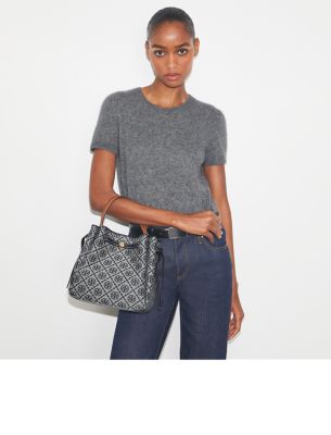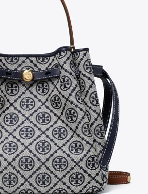 シグネチャーのウーブン ジャガードを使用し、ゆるやかなギャザーを寄せたロミー Tモノグラム バケットバッグ。ゆとりのあるコンパートメントと、小物を整理できるポケットを備えた、毎日活躍する軽量バッグです。スリムなベルトと、新デザインのボタンロゴをあしらいました。トップハンドルとクロスボディストラップの2通りの持ち方が楽しめます。