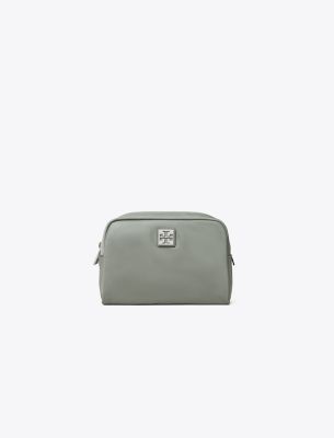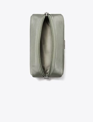 90年代の定番が再登場。丈夫なリサイクルナイロンを使用し、バイオベースのレザー調のトリムをあしらったヴァージニア コスメティックケース。超軽量で、上部にファスナーが付いています。普段使いまたは旅行に最適。