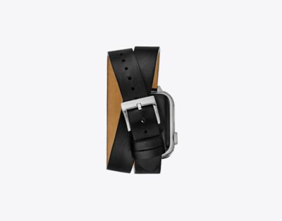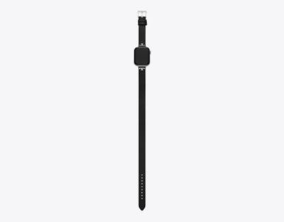 二重巻きにしてお使いいただける、Apple Watch®専用の細いレザーバンド。ダブルTのスプリットロゴでウォッチケースを囲み、シームレスで洗練されたデザインに仕上げました。ウォッチ裏側の取り外しボタンを押し、既存のバンドをスライドさせて交換します。