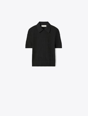 シグネチャーのTモノグラムをジャガードで織り上げたポロシャツ。同系色のパターンがさりげない質感をプラスする、着回しのきくシルエット。